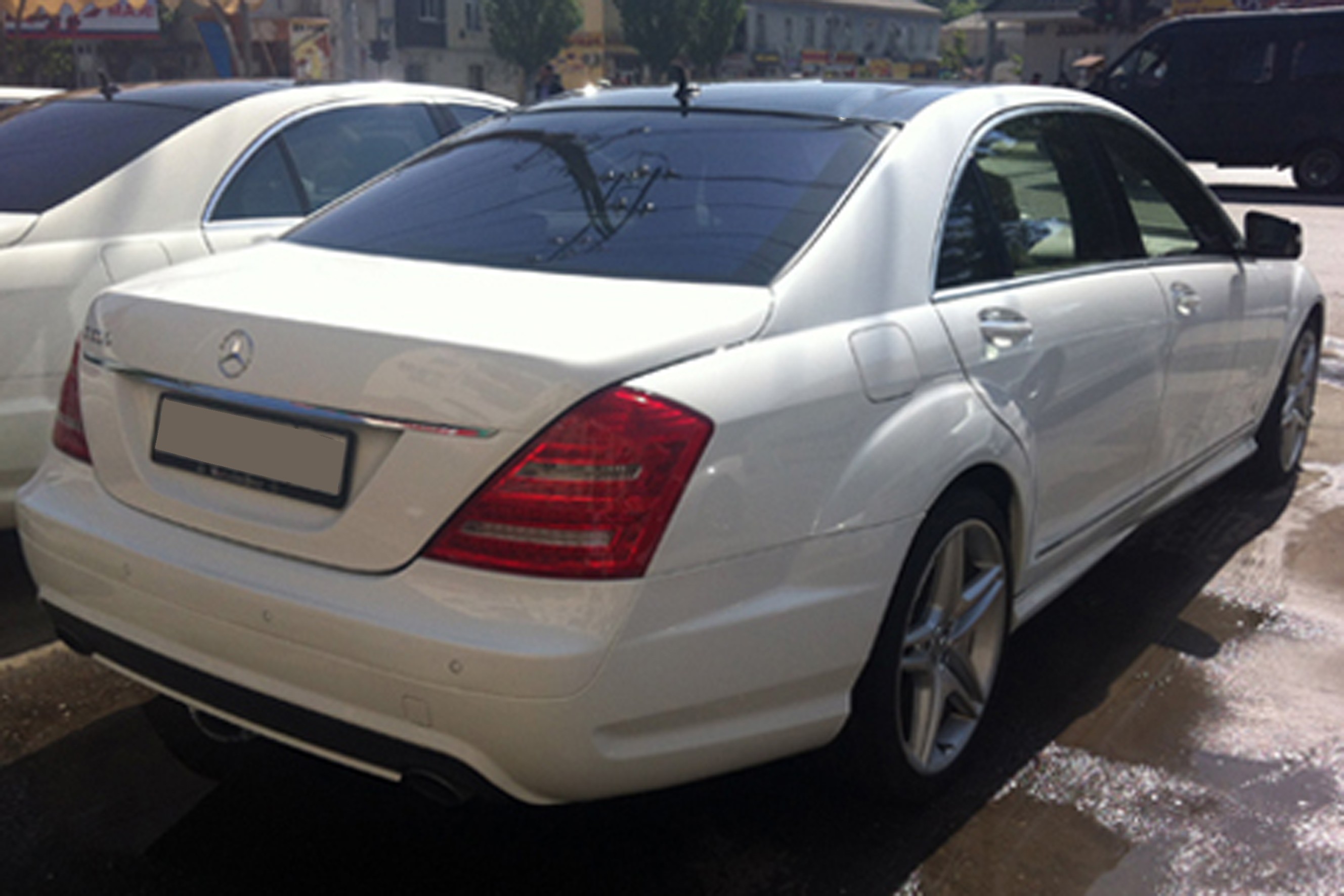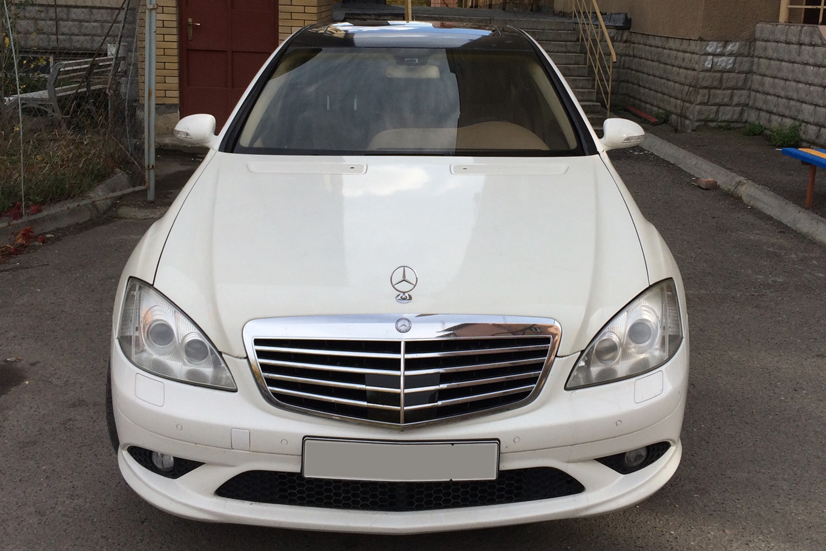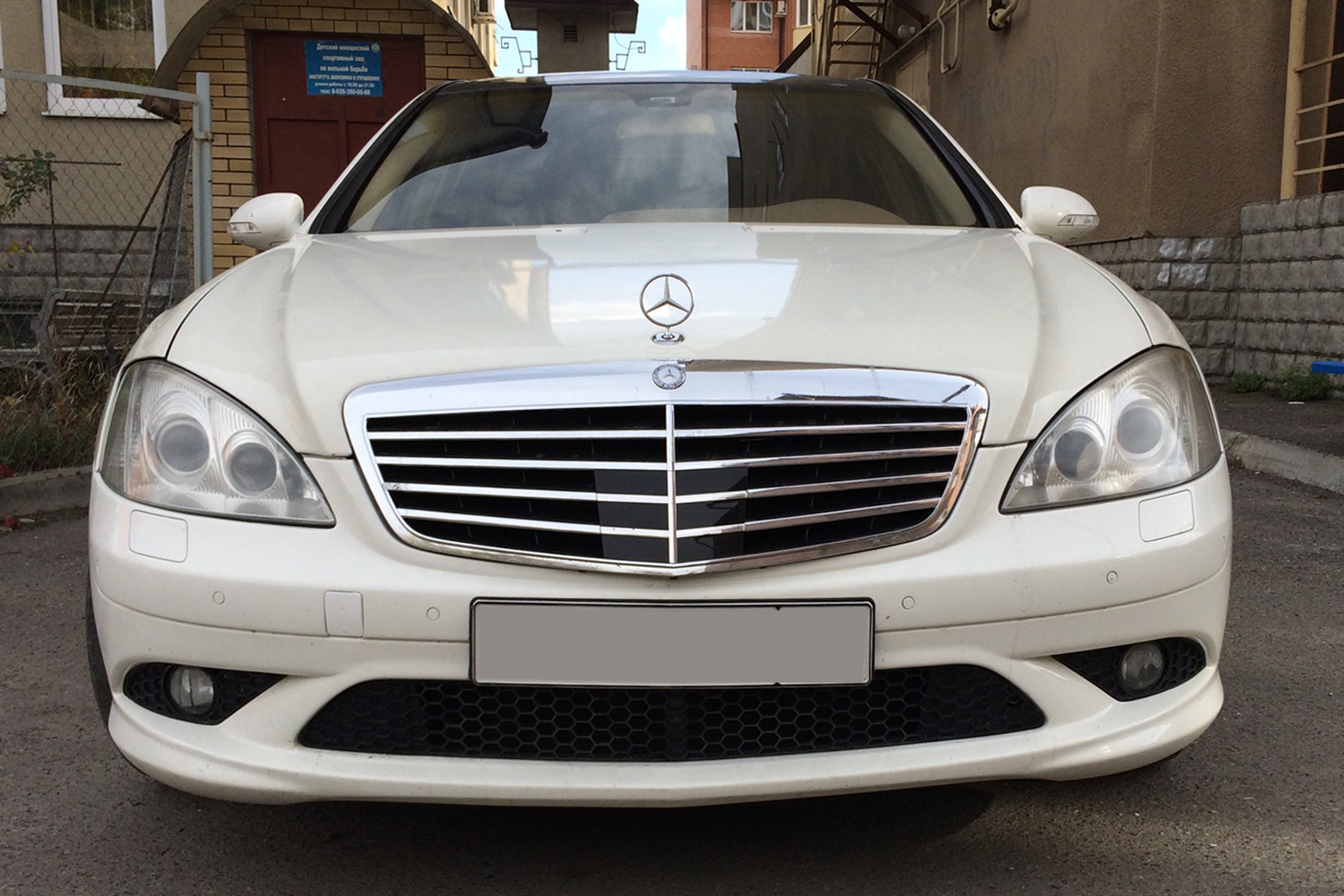 Прокат автомобиля представительского класса Mercedes S 500 белого цвета с водителем в Буйнакске