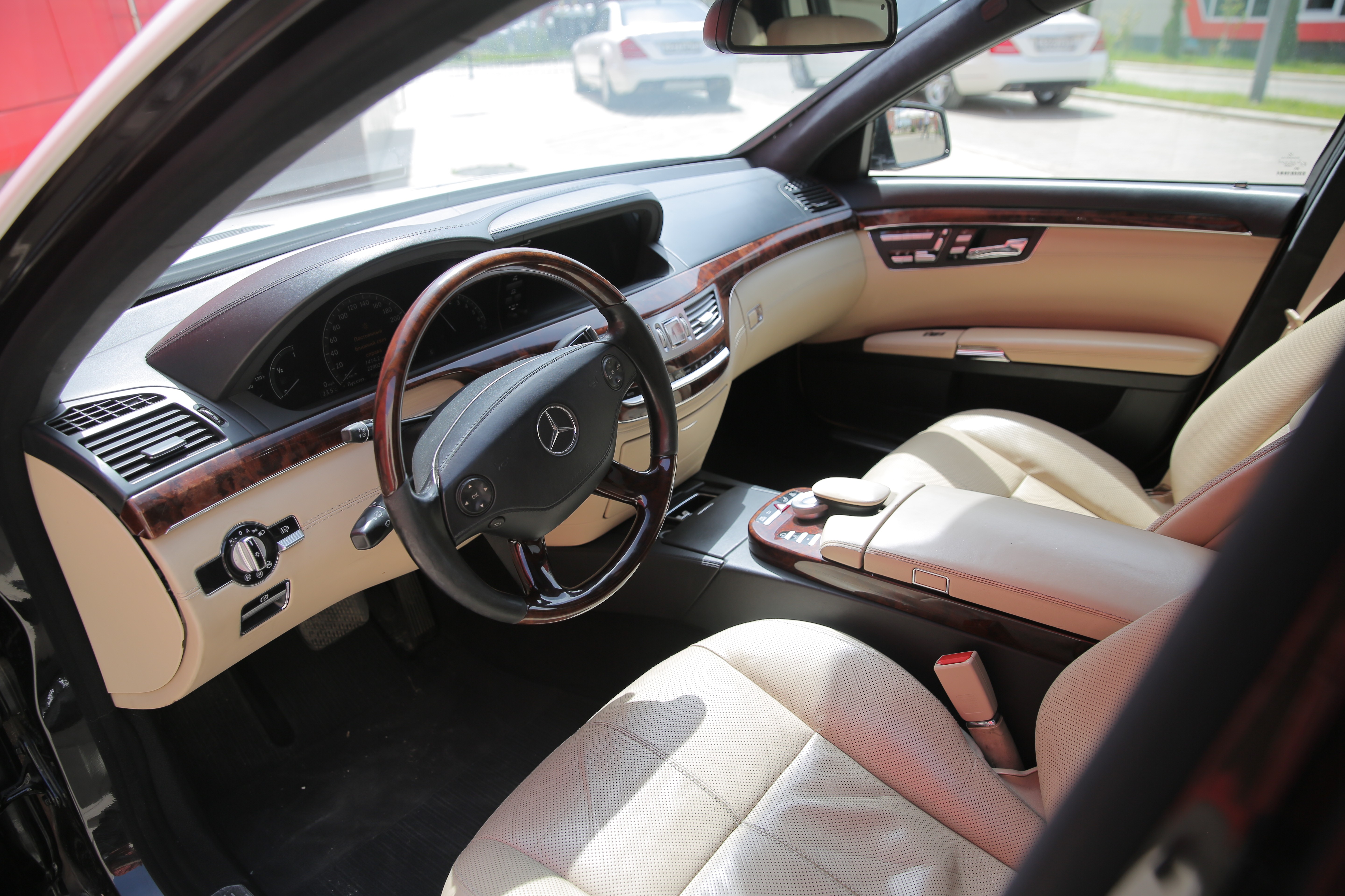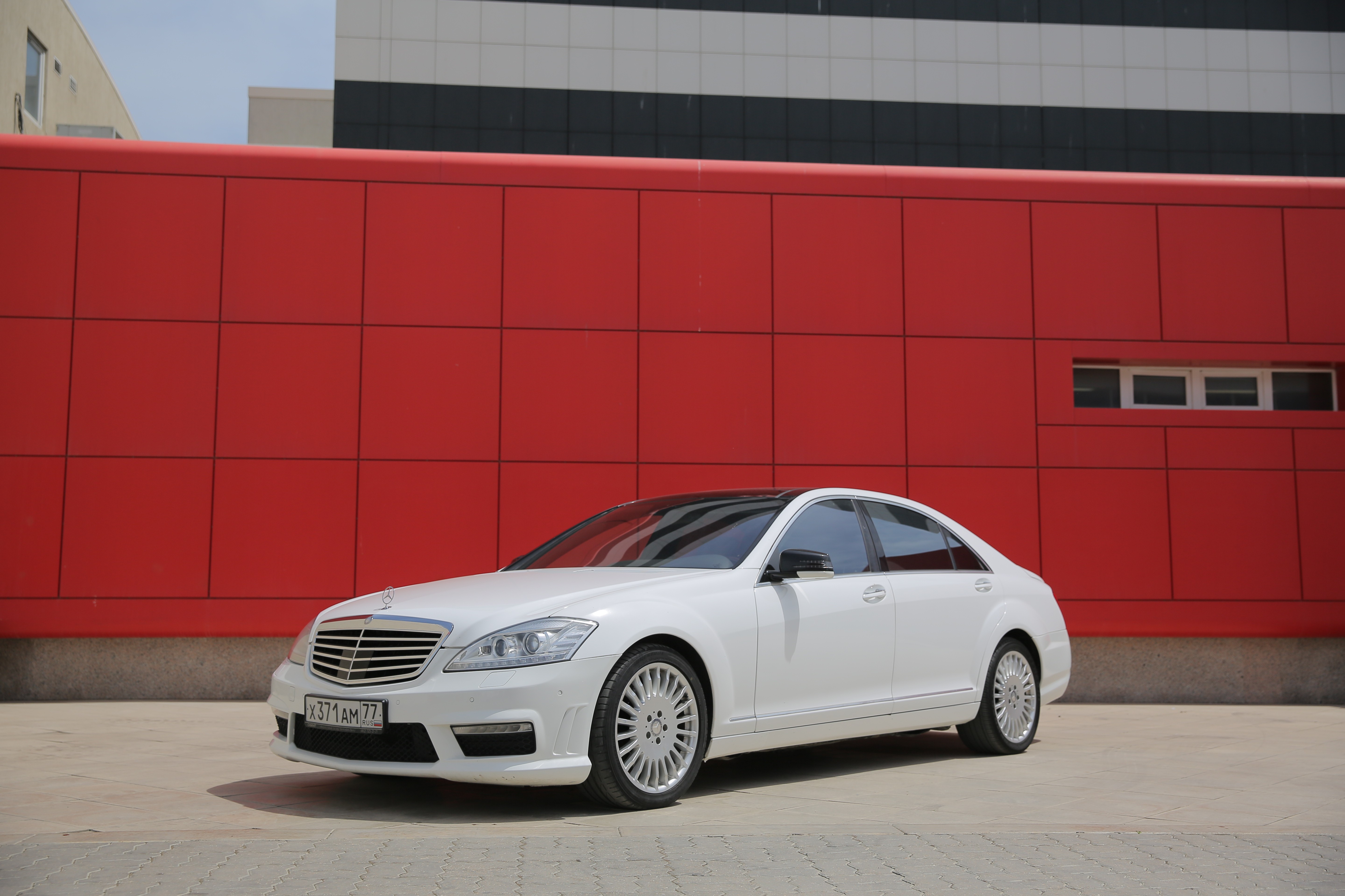 Прокат автомобиля представительского класса Mercedes S 500 белого цвета с водителем в Буйнакске